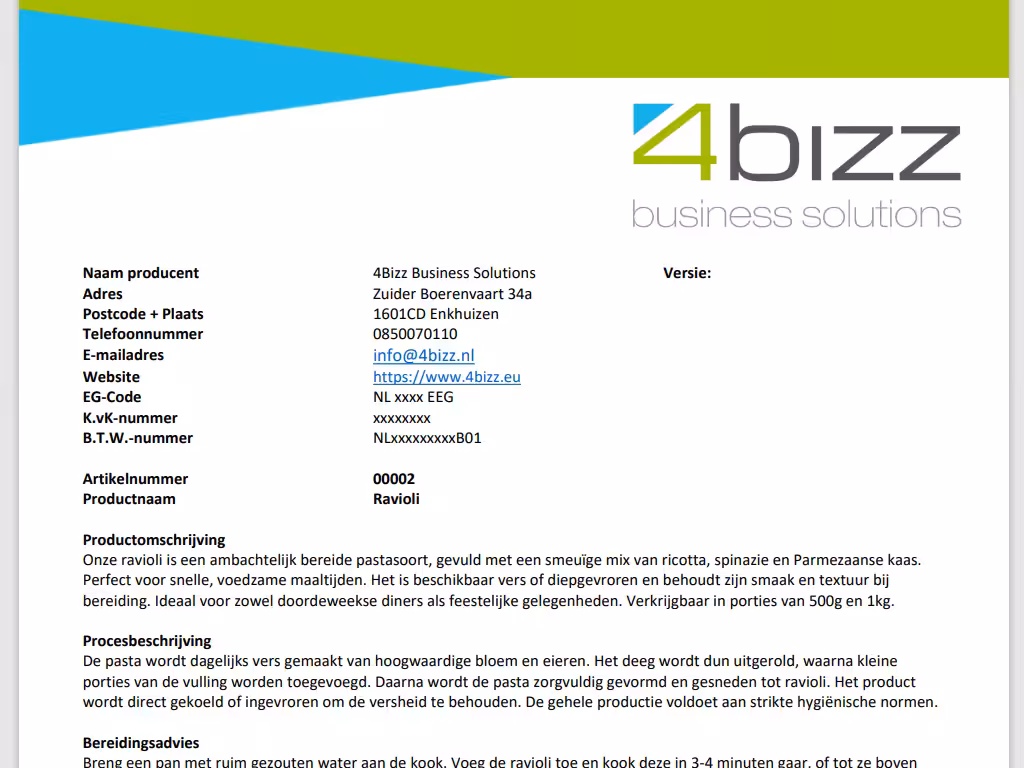 In een snel veranderende ERP-wereld zet 4BIZZ een belangrijke stap met de introductie van onze geavanceerde voedingswaardemodule, speciaal ontworpen voor bedrijven in de voedingsmiddelenindustrie.