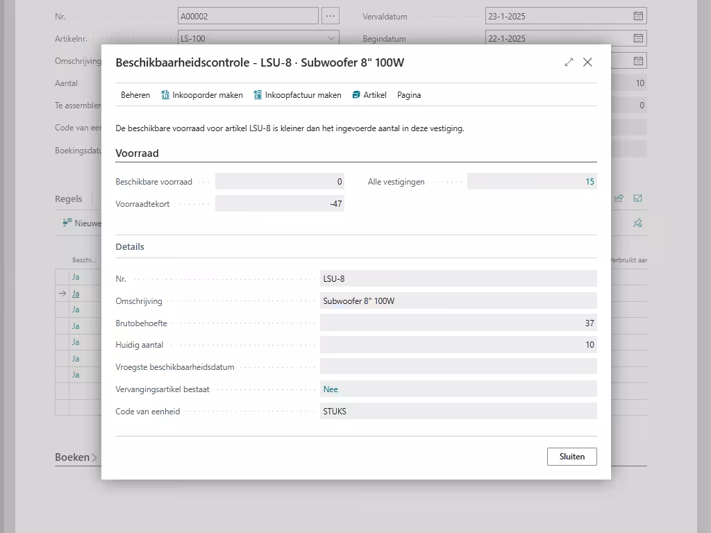 Met Microsoft Dynamics 365 Business Central biedt 4Bizz de oplossing voor een gestroomlijnde en efficiënte assemblage van producten. Van het plannen van de assemblageprocessen tot het beheren van voorraden en het monitoren van productielijnen – alles wordt overzichtelijk en eenvoudig. Ontdek hoe je met slimme automatisering en real-time inzicht jouw productie kunt optimaliseren, kosten kunt verlagen en levertijden kunt verkorten. Klaar om je assemblageprocessen naar een hoger niveau te tillen?