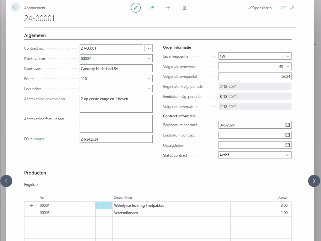 Deze functionaliteit stelt je in staat om met slechts één blik alle actieve abonnementen te overzien. Maar het gaat niet alleen om overzicht. Vanaf het allereerste moment dat je een nieuw contract opzet, zorgt de functionaliteit voor een optimale ervaring. Ieder contract is perfect afgestemd op unieke bedrijfsbehoeften en biedt flexibiliteit in de factureringscycli. Maar daar houdt het niet op. Naast uitgebreide contractinformatie, zorgt een vlekkeloze integratie met SEPA voor geautomatiseerde betalingen, allemaal binnen de vertrouwde interface van Microsoft Dynamics.