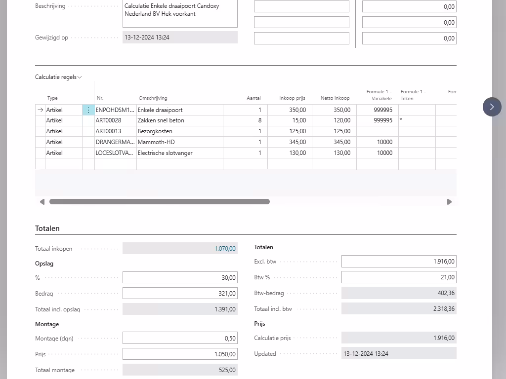 Stel moeiteloos complexe calculaties op, voeg marges en btw toe, en koppel direct aan offertes en assemblageprocessen. Met de calculatie functionaliteit van 4BIZZ heb je altijd controle, inzicht en snelheid in je berekeningen. Klaar voor een slimme stap vooruit? Ontdek het nu!